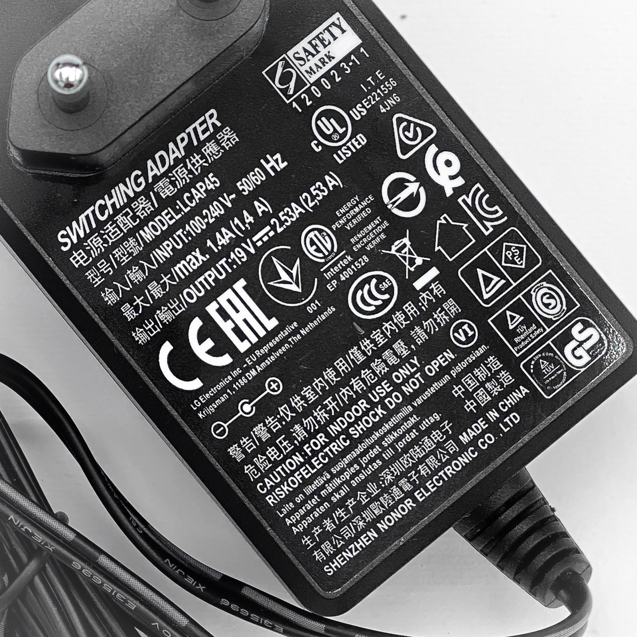 بررسی تخصصی آداپتور مانیتور LG برند HONOR – مدل 19V 2.53A با فیش مخصوص مانیتور